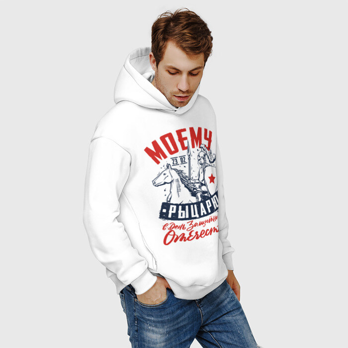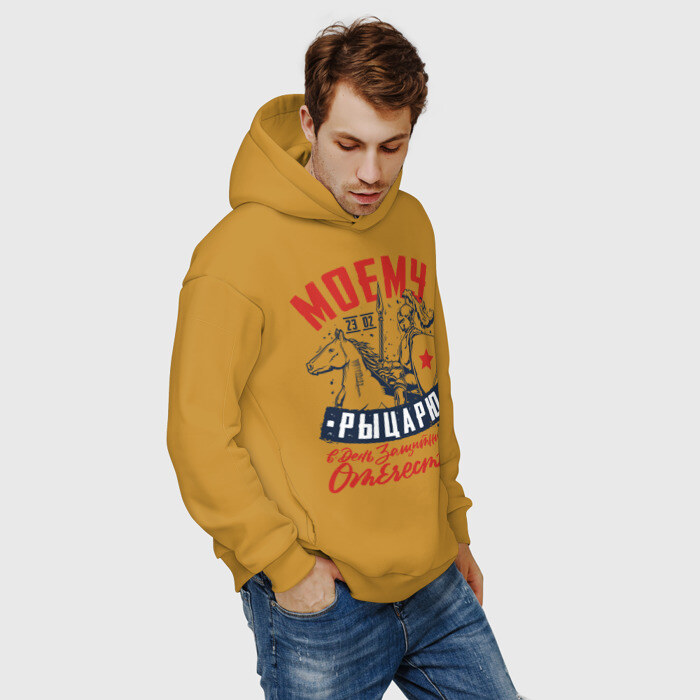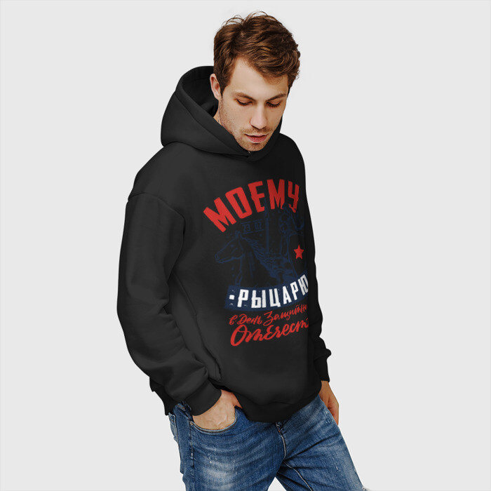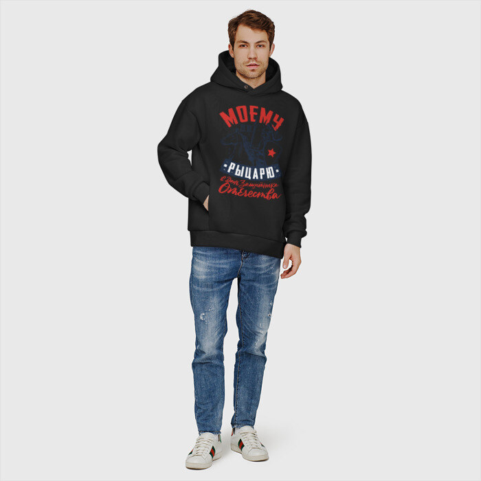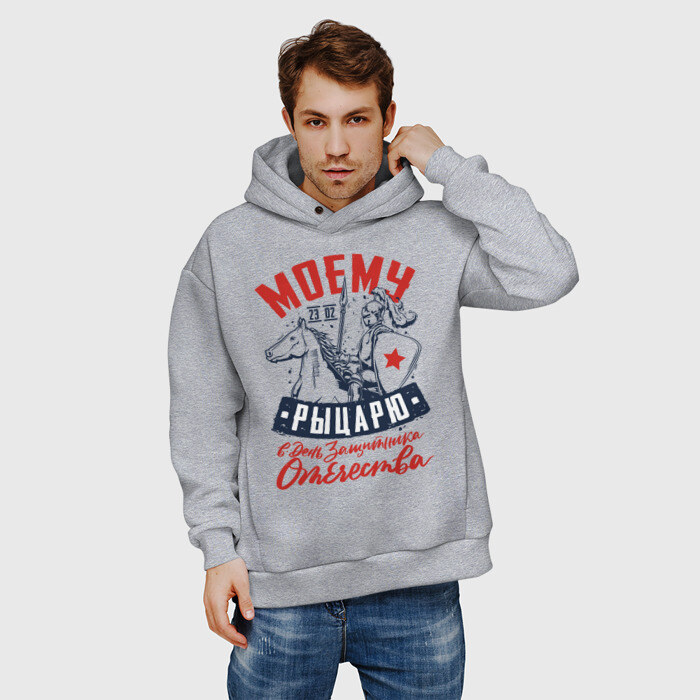 Мужское худи Oversize хлопок с принтом 23 Февраля День Рыцаря
