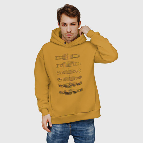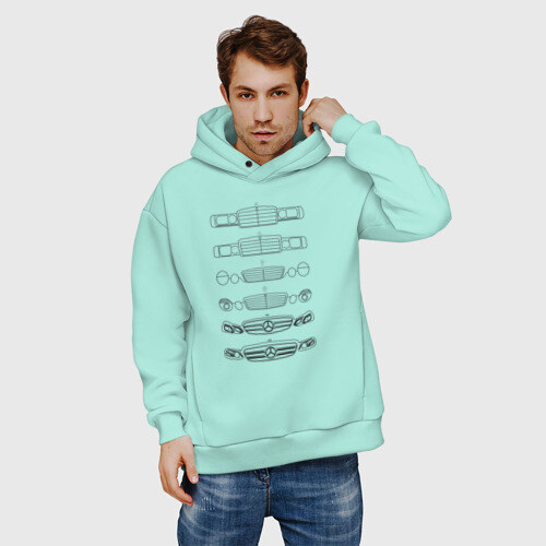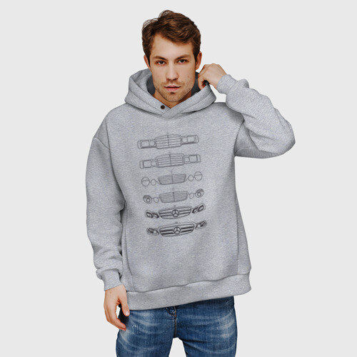 Мужское худи Oversize хлопок с принтом Mercedes E-klass History