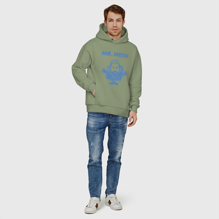 Мужское худи Oversize хлопок с принтом Мистер Месси