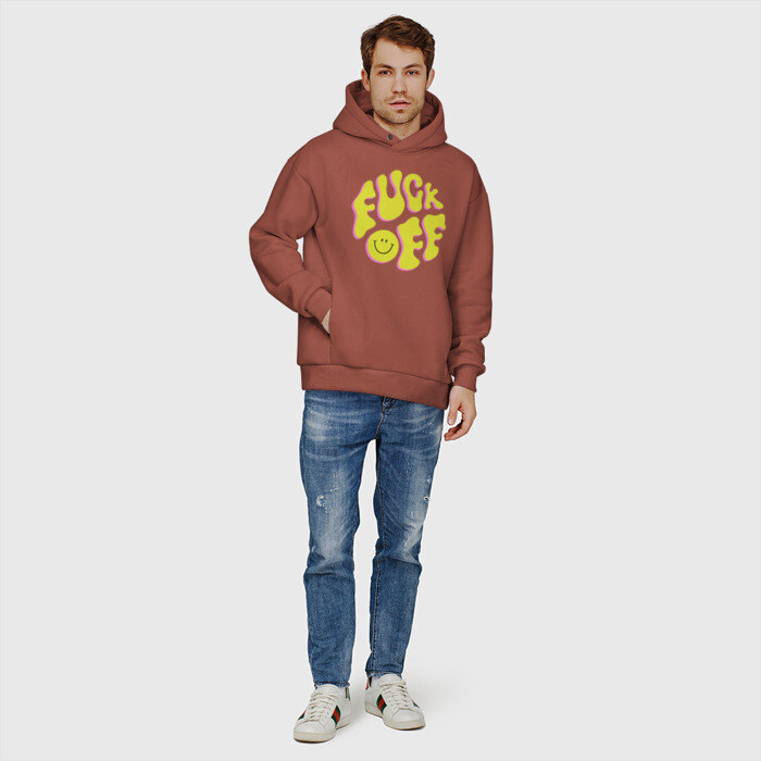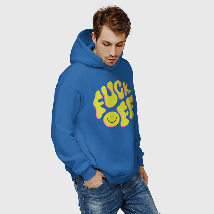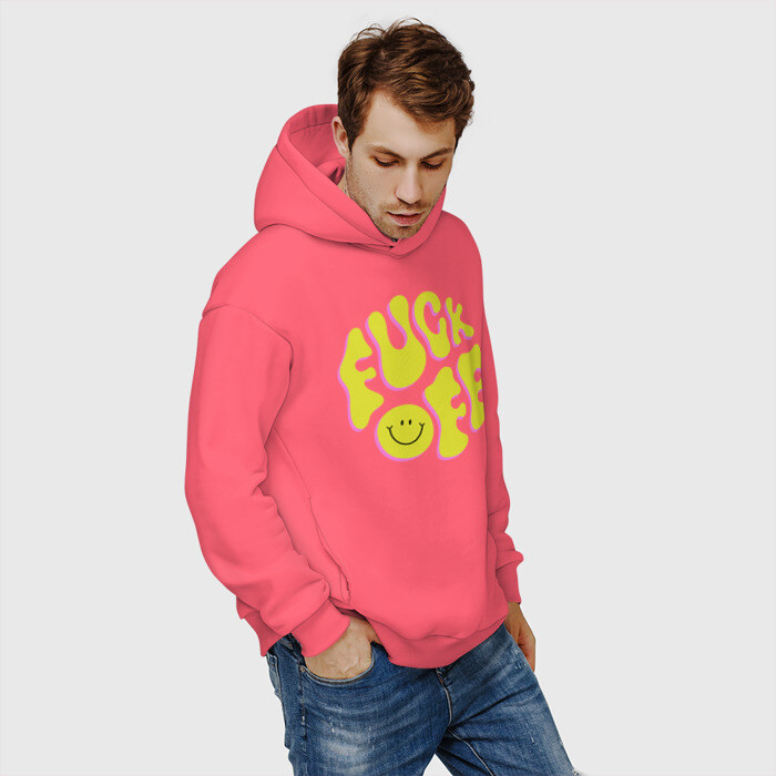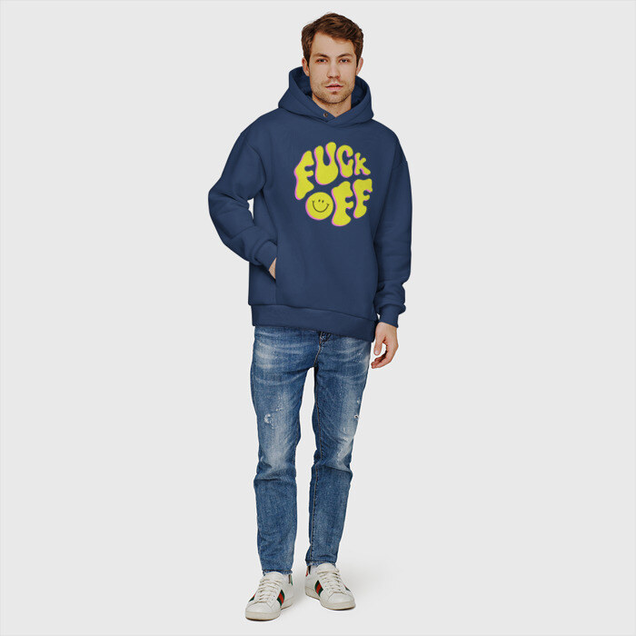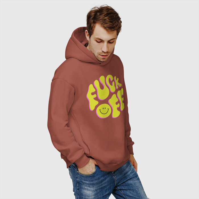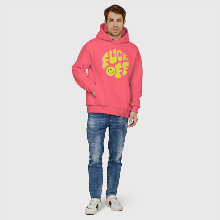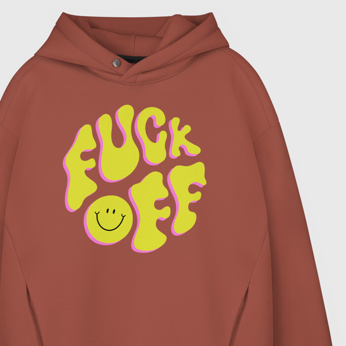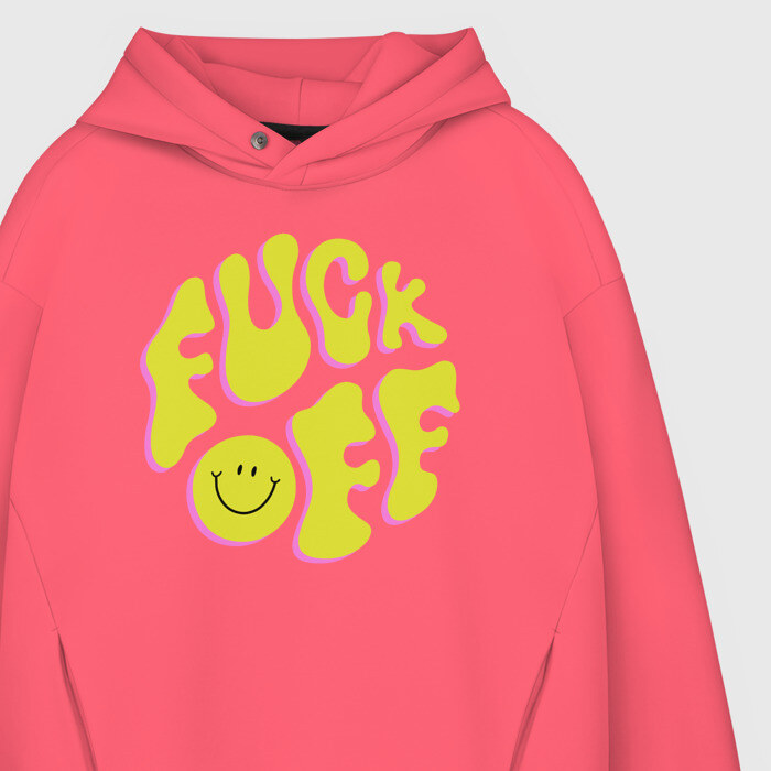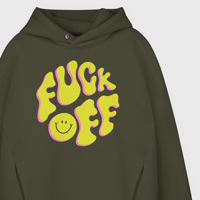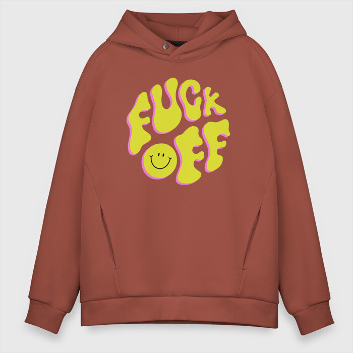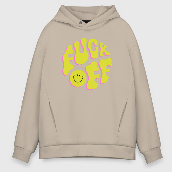 Мужское худи Oversize хлопок FUCK OFF SMILE