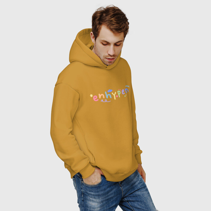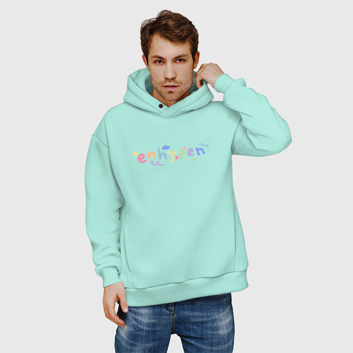 Мужское худи Oversize хлопок с принтом ENHYPEN with cute doodles
