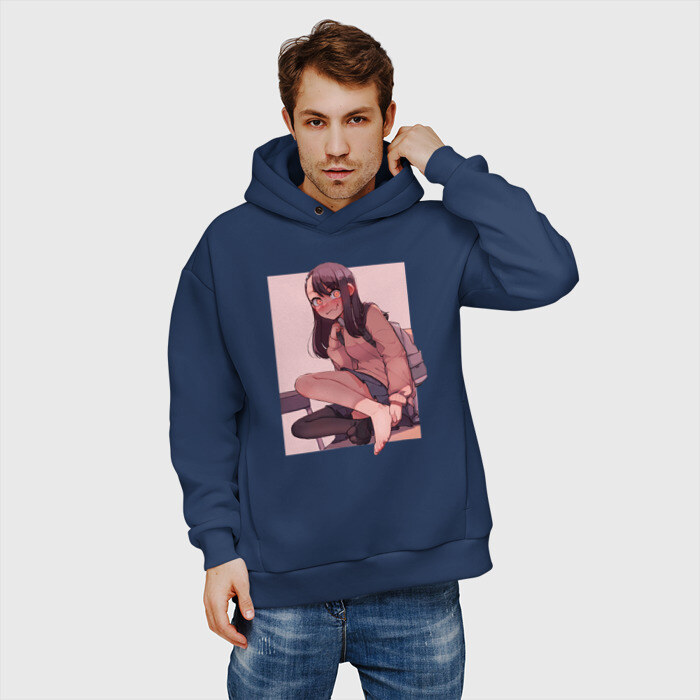 Мужское худи Oversize хлопок с принтом Нагаторо в школе