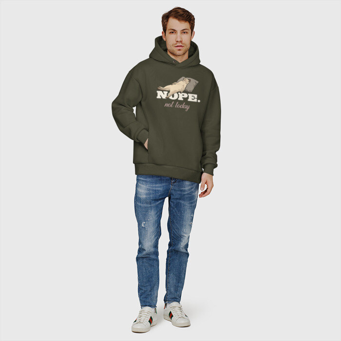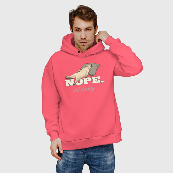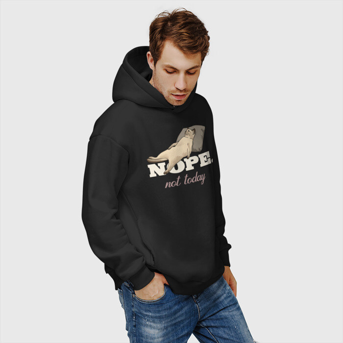 Мужское худи Oversize хлопок с принтом Нет, не сегодня