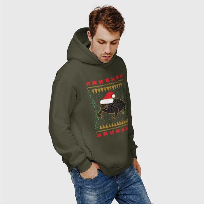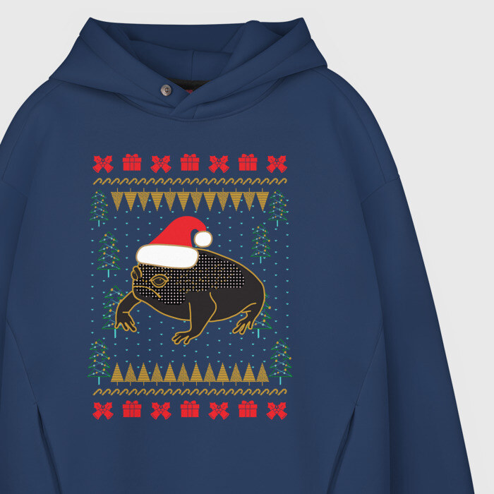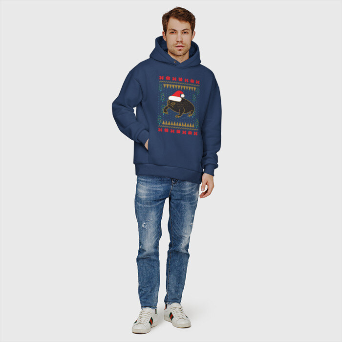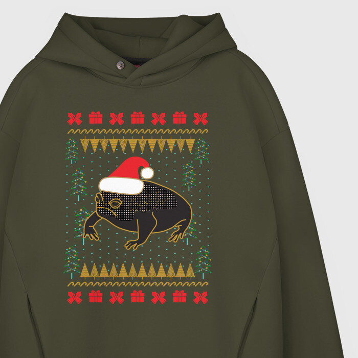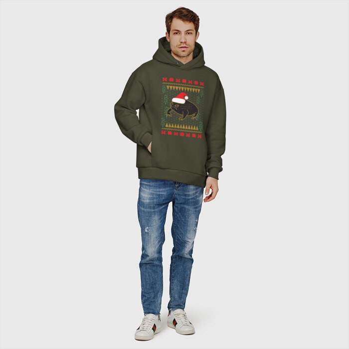 Мужские худи Oversize хлопок РОЖДЕСТВЕНСКИЙ СВИТЕР ЖАБА