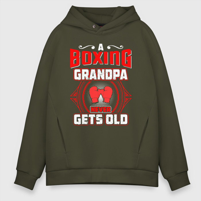 Мужское худи Oversize хлопок с принтом Дедушка боксер никогда не стареет