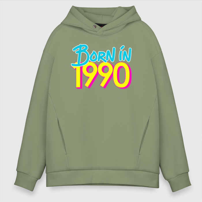 Мужское худи Oversize хлопок с принтом Родился в 1990 году