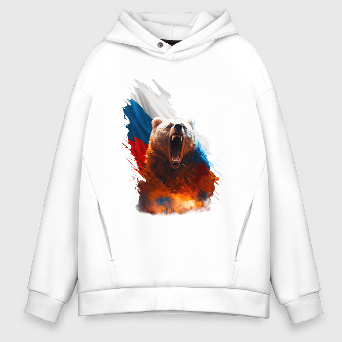 Мужское худи Oversize хлопок с принтом Злой русский медведь