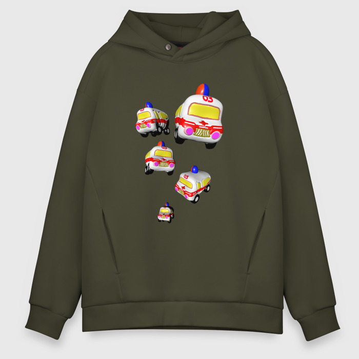 Мужское худи Oversize хлопок с принтом Машинки скорой помощи