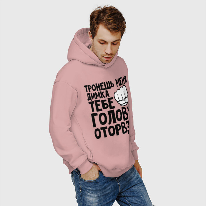 Мужское худи Oversize хлопок с принтом Димка голову оторвёт