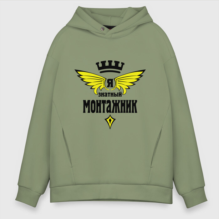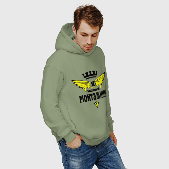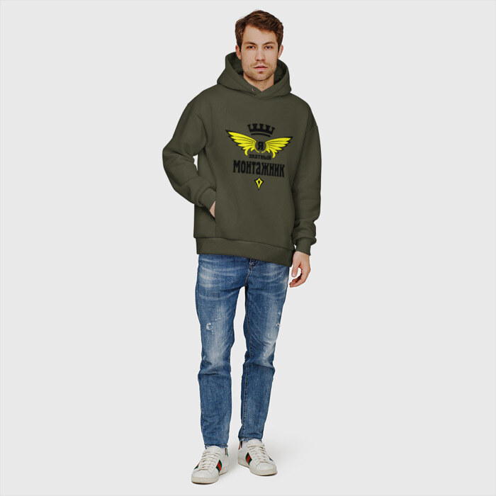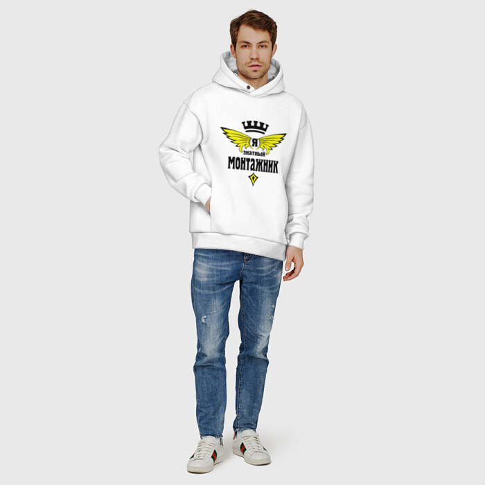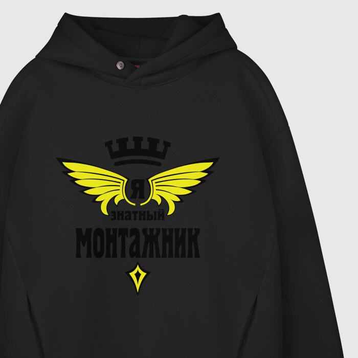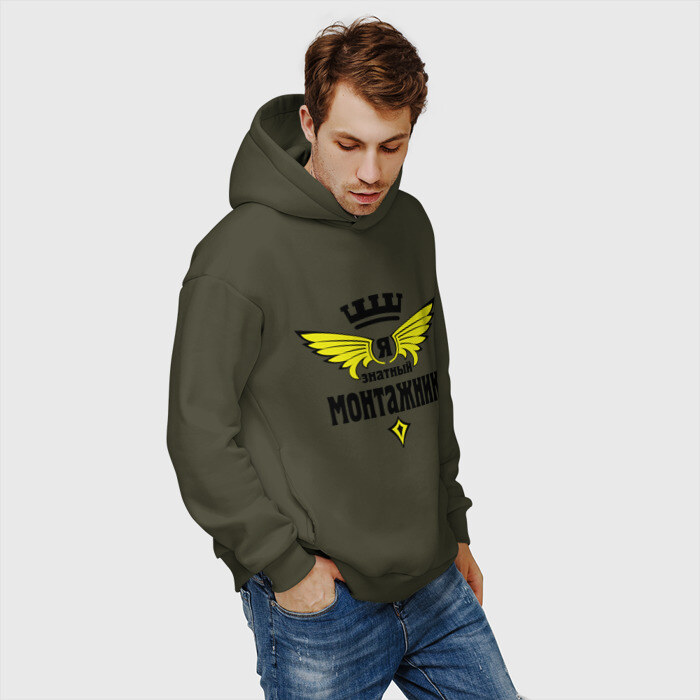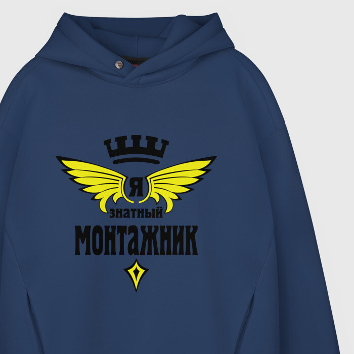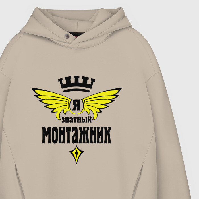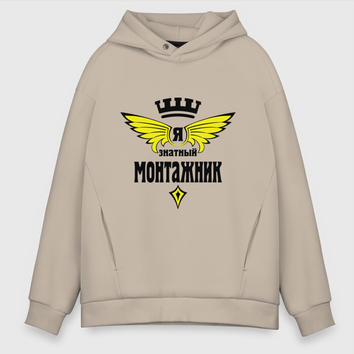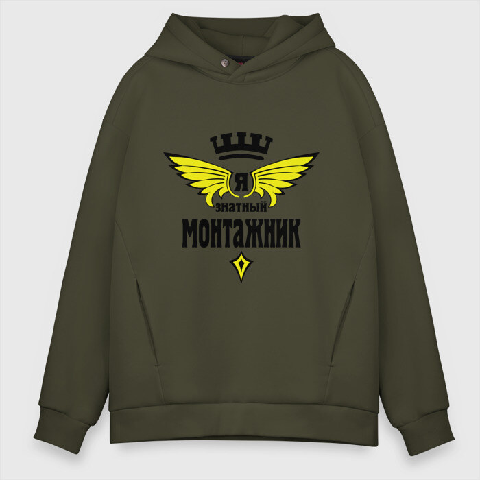 Мужское худи Oversize хлопок с принтом Знатный монтажник