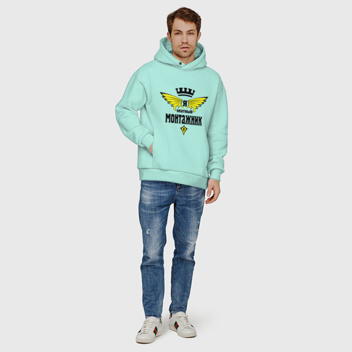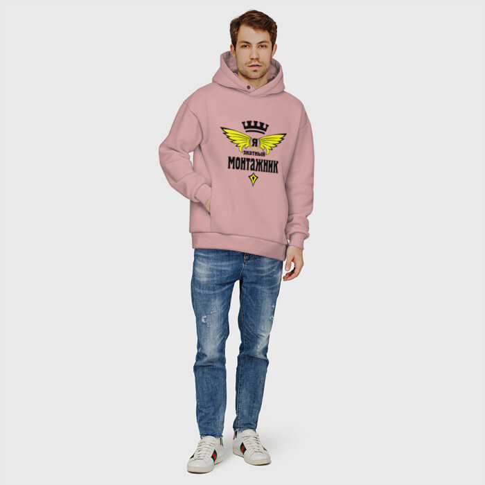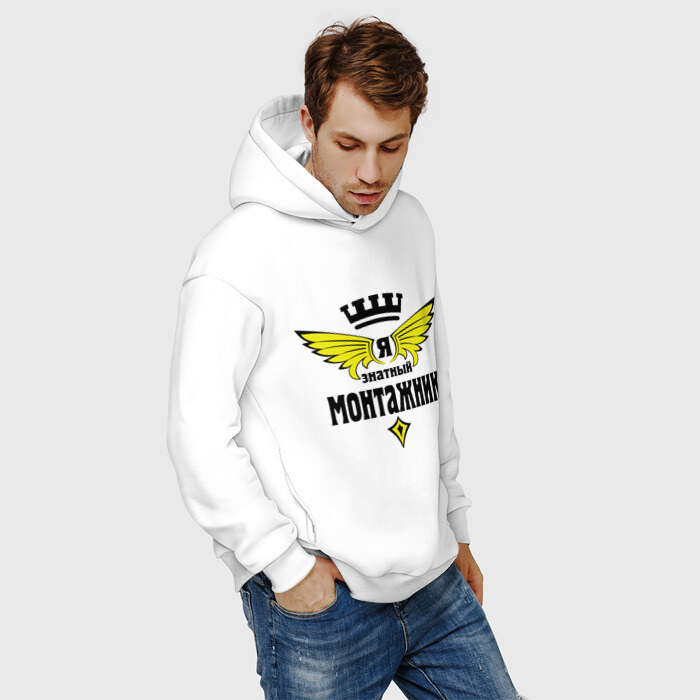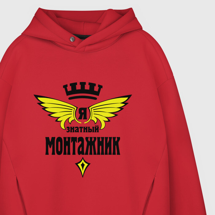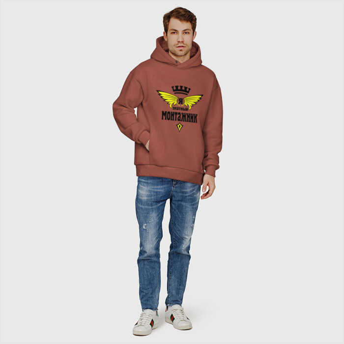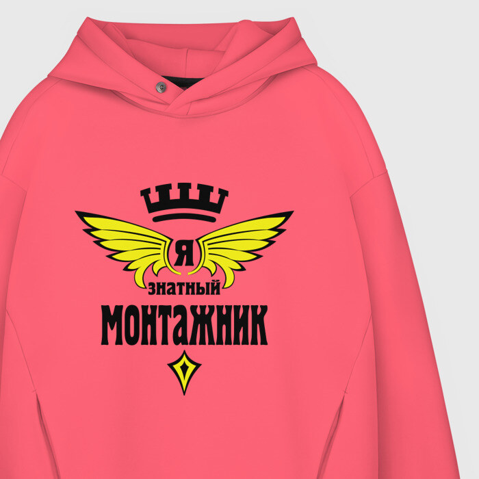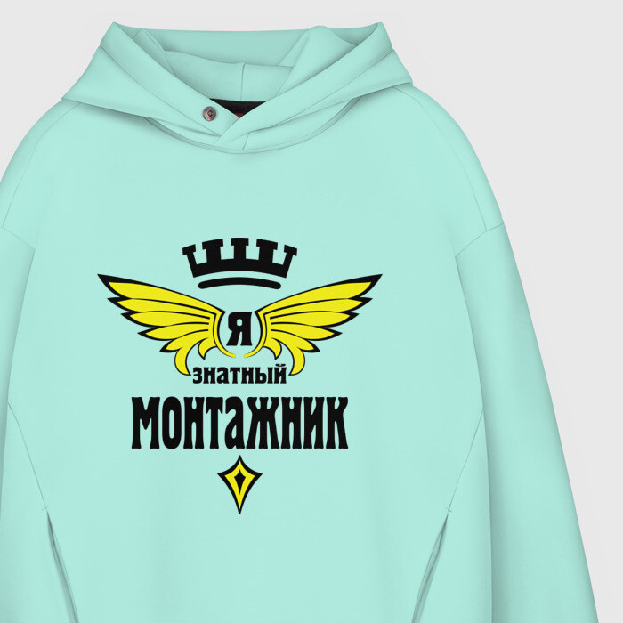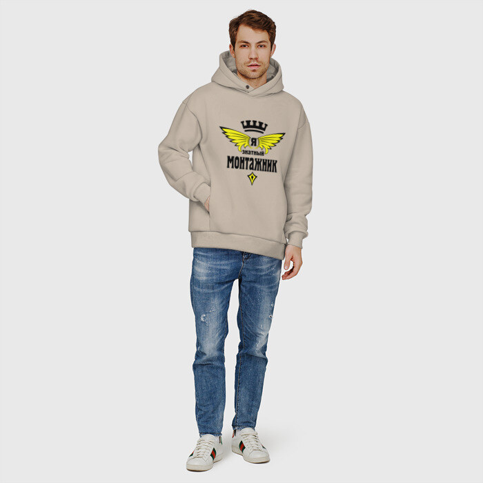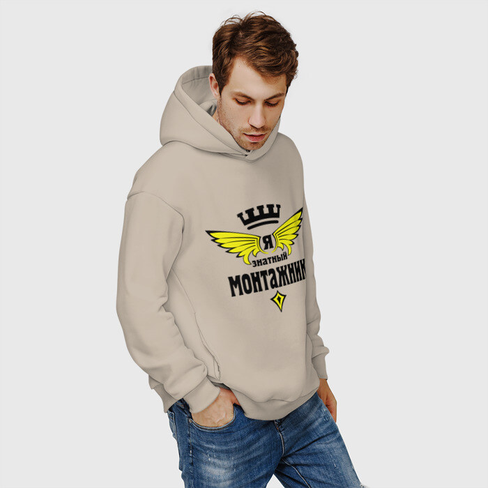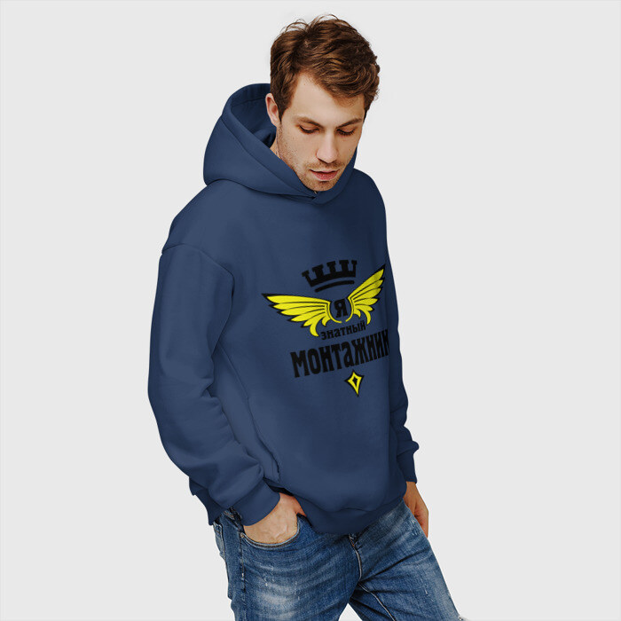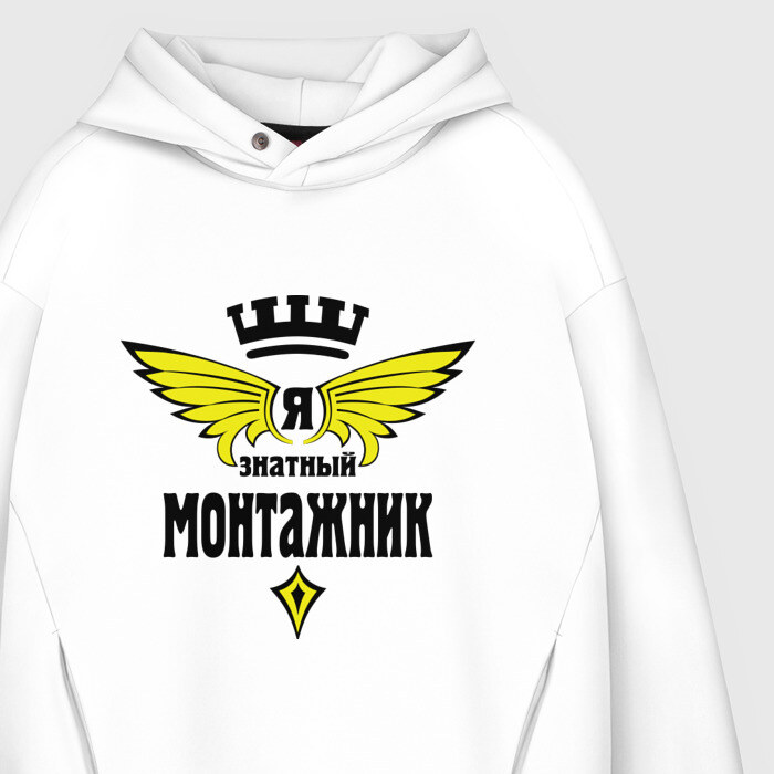 Мужское худи Oversize хлопок с принтом Знатный монтажник