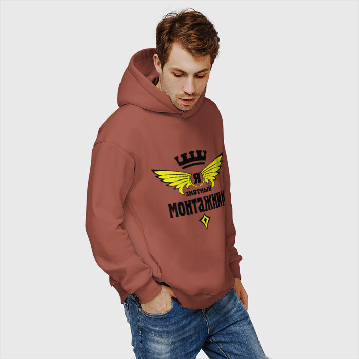 Мужские худи Oversize хлопок ЗНАТНЫЙ МОНТАЖНИК