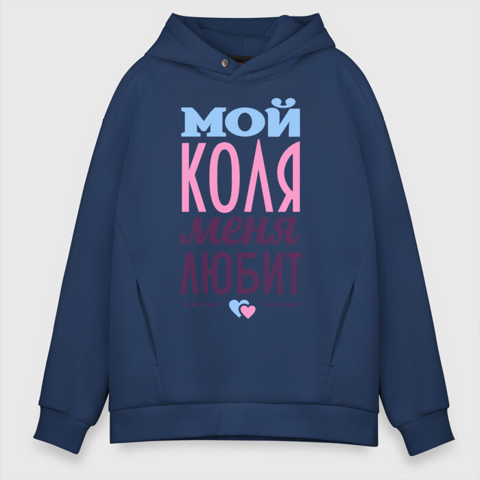 Мужское худи Oversize хлопок с принтом Коля меня любит