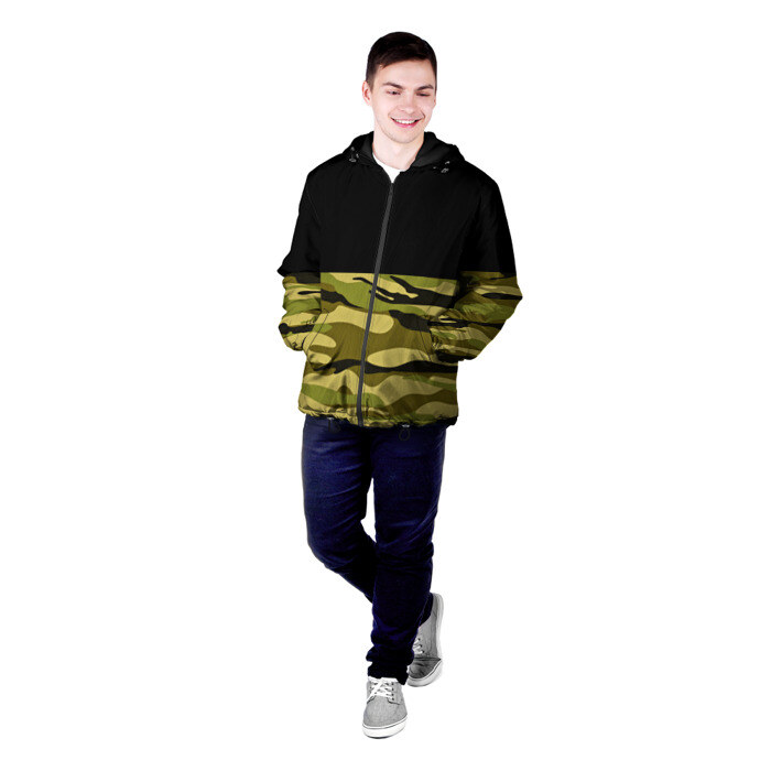 Куртка 3D сшита из плотного быстросохнущего материала, по всей поверхности которого наносится принт. Подойдет для осени и весны: внутри теплый флисовый подклад, капюшон защитит от дождя, руки согреются в боковых карманах. Можно сделать со своим дизайном.