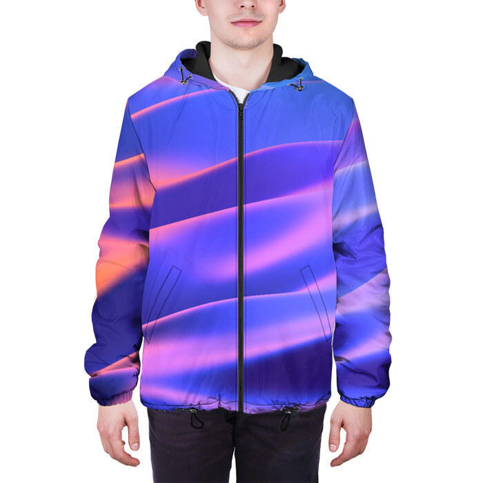 Куртка 3D сшита из плотного быстросохнущего материала, по всей поверхности которого наносится принт. Подойдет для осени и весны: внутри теплый флисовый подклад, капюшон защитит от дождя, руки согреются в боковых карманах. Можно сделать со своим дизайном.