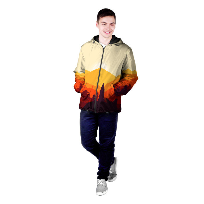 Куртка 3D сшита из плотного быстросохнущего материала, по всей поверхности которого наносится принт. Подойдет для осени и весны: внутри теплый флисовый подклад, капюшон защитит от дождя, руки согреются в боковых карманах. Можно сделать со своим дизайном.
