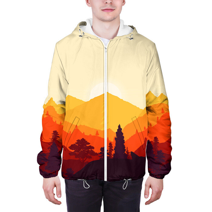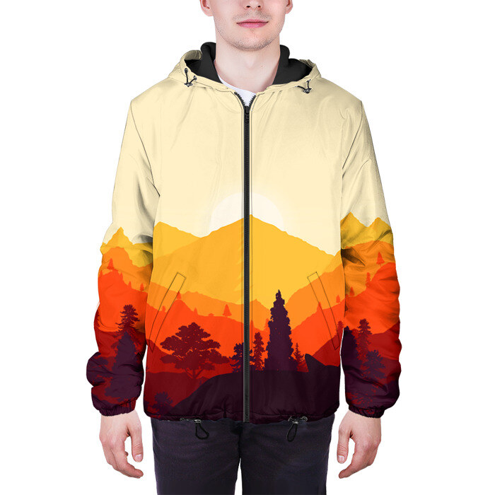 Мужская куртка 3D Горы закат пейзаж лиса арт