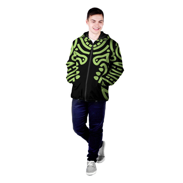 Куртка 3D сшита из плотного быстросохнущего материала, по всей поверхности которого наносится принт. Подойдет для осени и весны: внутри теплый флисовый подклад, капюшон защитит от дождя, руки согреются в боковых карманах. Можно сделать со своим дизайном.