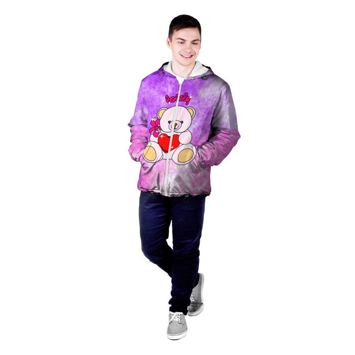 Куртка 3D сшита из плотного быстросохнущего материала, по всей поверхности которого наносится принт. Подойдет для осени и весны: внутри теплый флисовый подклад, капюшон защитит от дождя, руки согреются в боковых карманах. Можно сделать со своим дизайном.