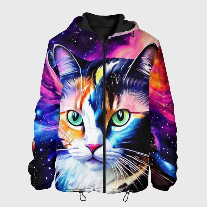 Мужская куртка 3D Живописный космический портрет трехцветной кошки