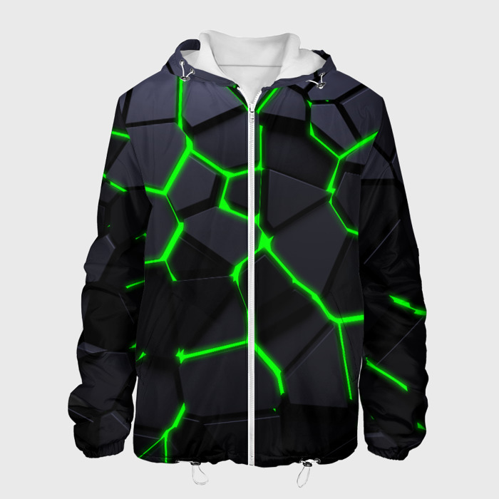 Мужская куртка 3D с принтом Зеленые плиты киберпанк