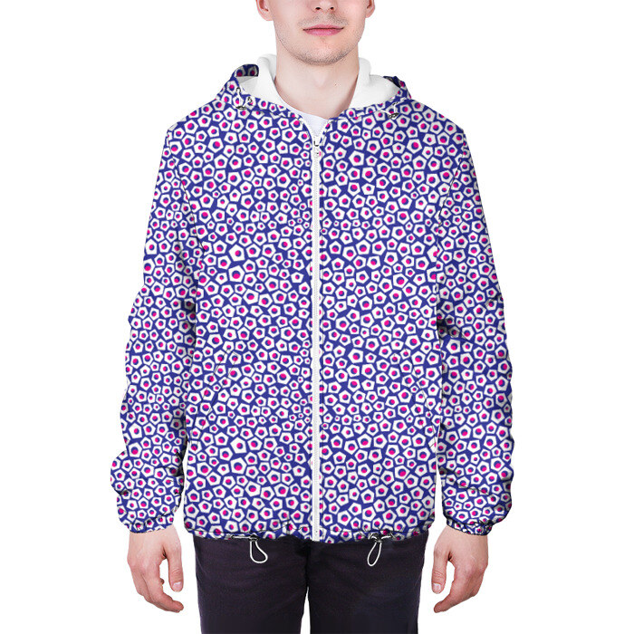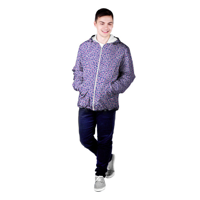 Куртка 3D сшита из плотного быстросохнущего материала, по всей поверхности которого наносится принт. Подойдет для осени и весны: внутри теплый флисовый подклад, капюшон защитит от дождя, руки согреются в боковых карманах. Можно сделать со своим дизайном.