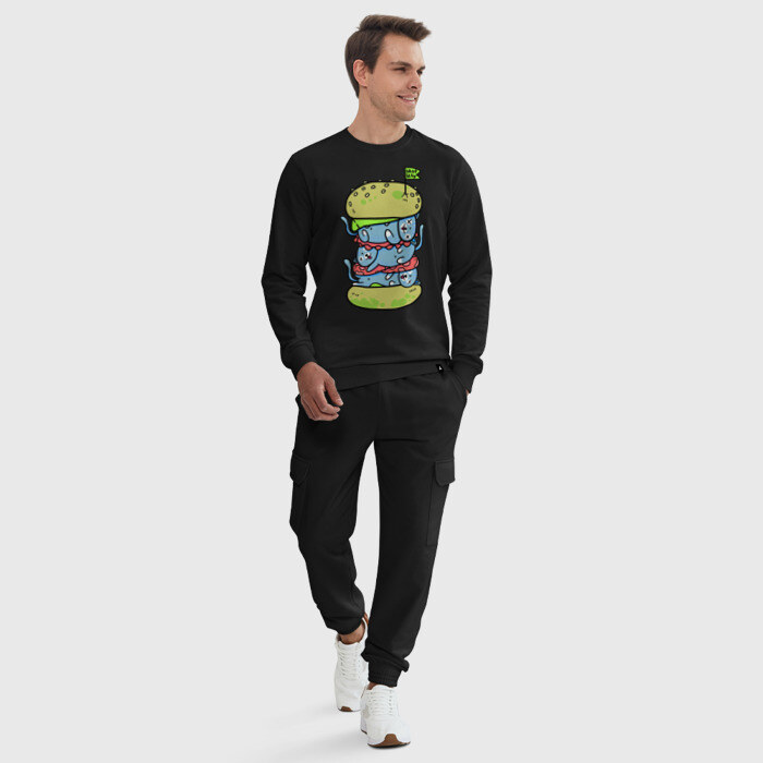 Костюм из мягкого хлопка с мягким и теплым начесом внутри. Базовая вещь в гардеробе, которую можно сочетать с другими вещами: например, брюки надеть с другой футболкой, верх носить отдельно. Пара выполнена из хлопка одного цвета, а брюки сшиты из той же ткани, что и базовый хлопковый свитшот . Брюки на поясе фиксируются не только широкой трикотажной резинкой, но и дополнительными завязками. Принт наносится только на свитшот. Можно заказать как со своим дизайном, так и вообще без него.