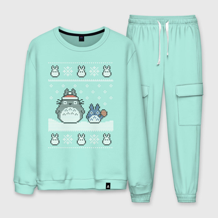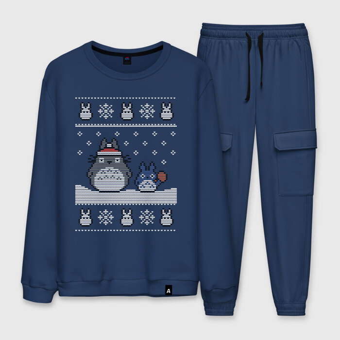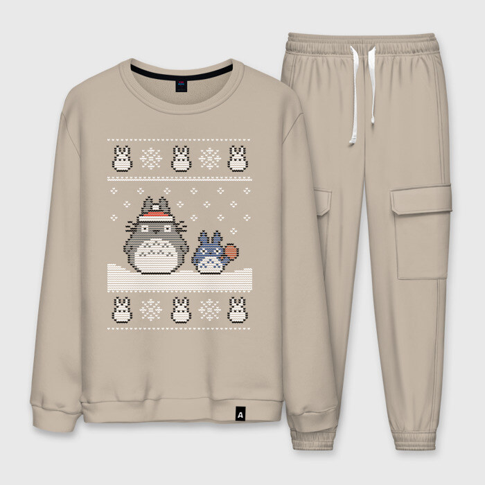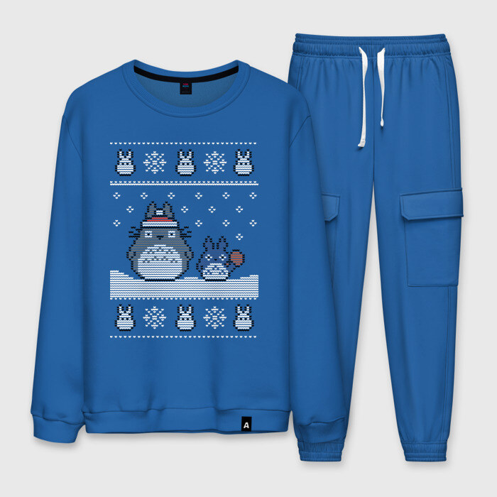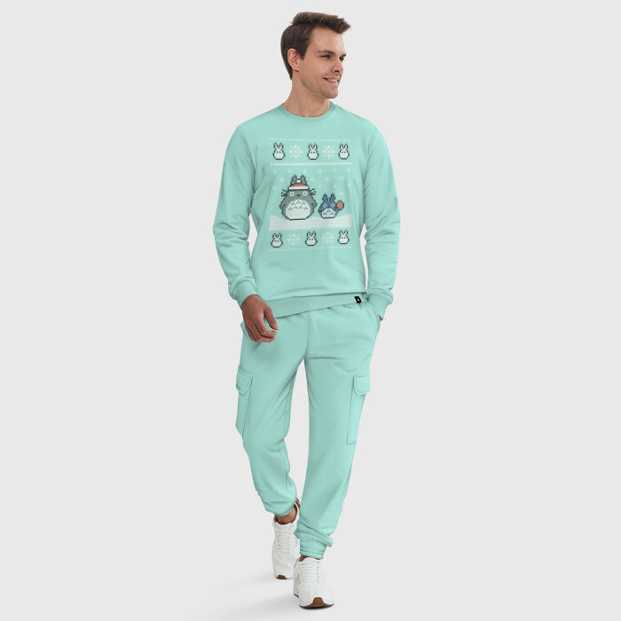 Костюм из мягкого хлопка с мягким и теплым начесом внутри. Базовая вещь в гардеробе, которую можно сочетать с другими вещами: например, брюки надеть с другой футболкой, верх носить отдельно. Пара выполнена из хлопка одного цвета, а брюки сшиты из той же ткани, что и базовый хлопковый свитшот . Брюки на поясе фиксируются не только широкой трикотажной резинкой, но и дополнительными завязками. Принт наносится только на свитшот. Можно заказать как со своим дизайном, так и вообще без него.