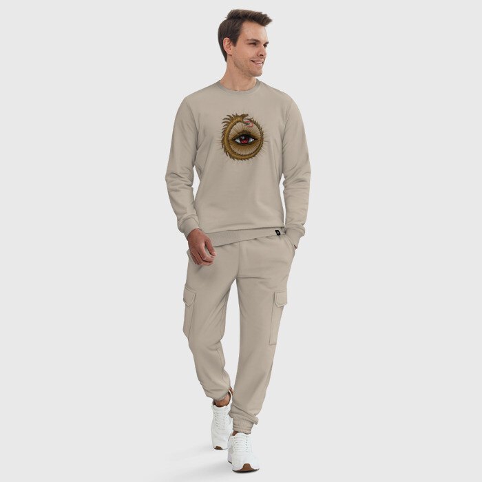 Костюм из мягкого хлопка с мягким и теплым начесом внутри. Базовая вещь в гардеробе, которую можно сочетать с другими вещами: например, брюки надеть с другой футболкой, верх носить отдельно. Пара выполнена из хлопка одного цвета, а брюки сшиты из той же ткани, что и базовый хлопковый свитшот . Брюки на поясе фиксируются не только широкой трикотажной резинкой, но и дополнительными завязками. Принт наносится только на свитшот. Можно заказать как со своим дизайном, так и вообще без него.