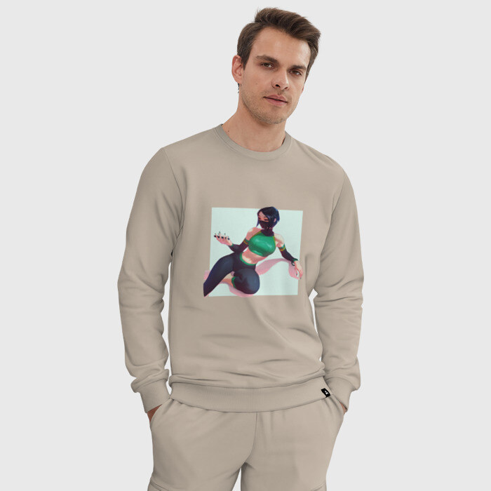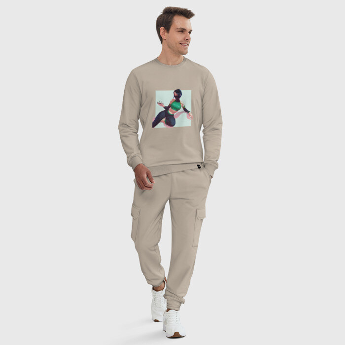 Костюм из мягкого хлопка с мягким и теплым начесом внутри. Базовая вещь в гардеробе, которую можно сочетать с другими вещами: например, брюки надеть с другой футболкой, верх носить отдельно. Пара выполнена из хлопка одного цвета, а брюки сшиты из той же ткани, что и базовый хлопковый свитшот . Брюки на поясе фиксируются не только широкой трикотажной резинкой, но и дополнительными завязками. Принт наносится только на свитшот. Можно заказать как со своим дизайном, так и вообще без него.