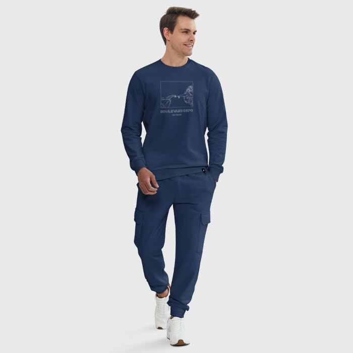 Костюм из мягкого хлопка с мягким и теплым начесом внутри. Базовая вещь в гардеробе, которую можно сочетать с другими вещами: например, брюки надеть с другой футболкой, верх носить отдельно. Пара выполнена из хлопка одного цвета, а брюки сшиты из той же ткани, что и базовый хлопковый свитшот . Брюки на поясе фиксируются не только широкой трикотажной резинкой, но и дополнительными завязками. Принт наносится только на свитшот. Можно заказать как со своим дизайном, так и вообще без него.