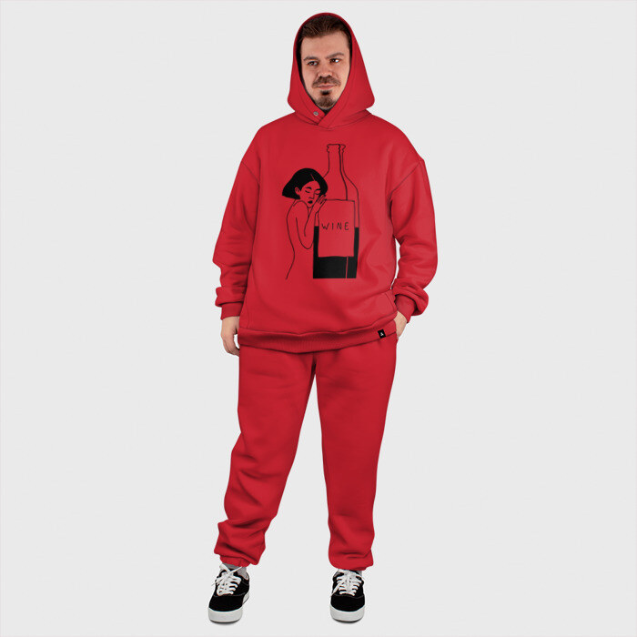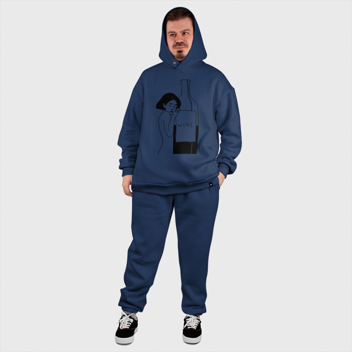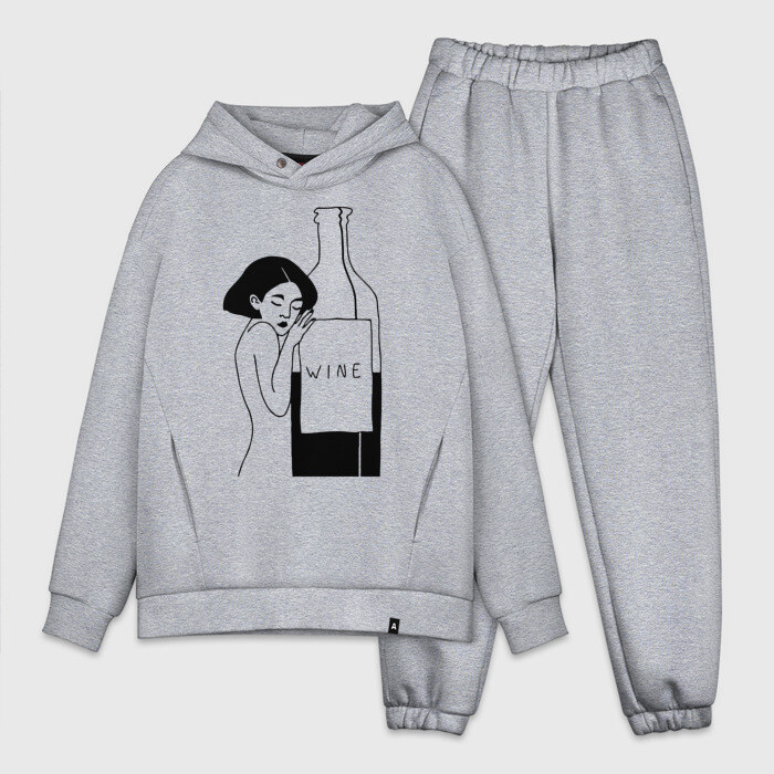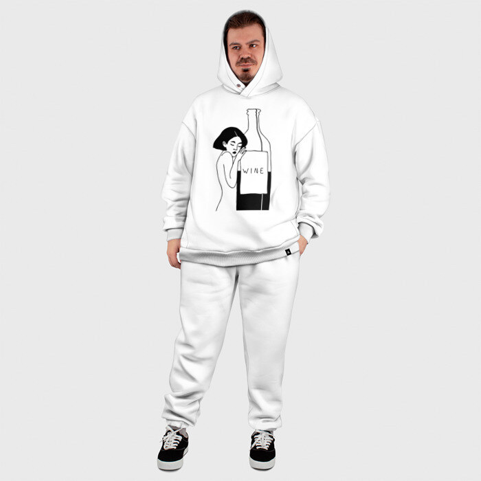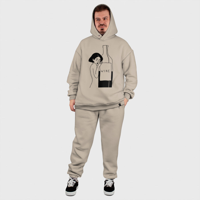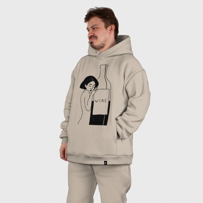 Мужской костюм хлопок OVERSIZE ДЕВУШКА С БУТЫЛКОЙ ВИНА
