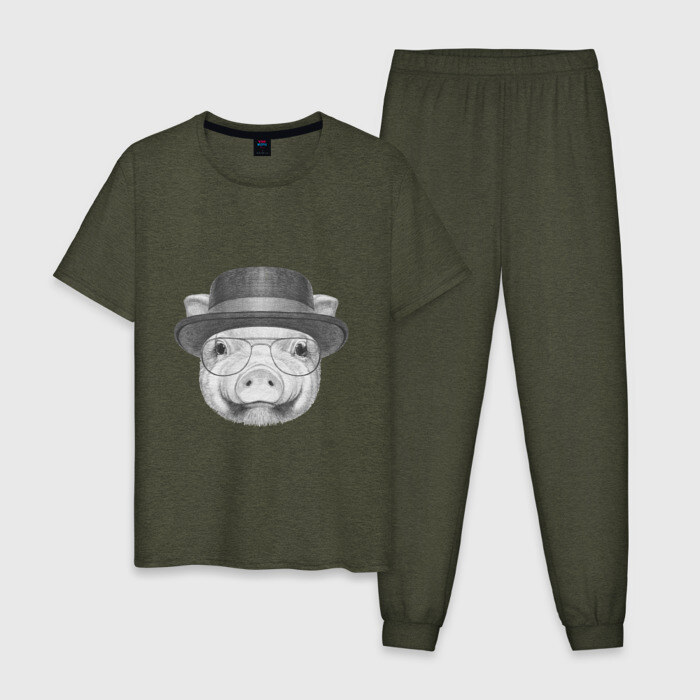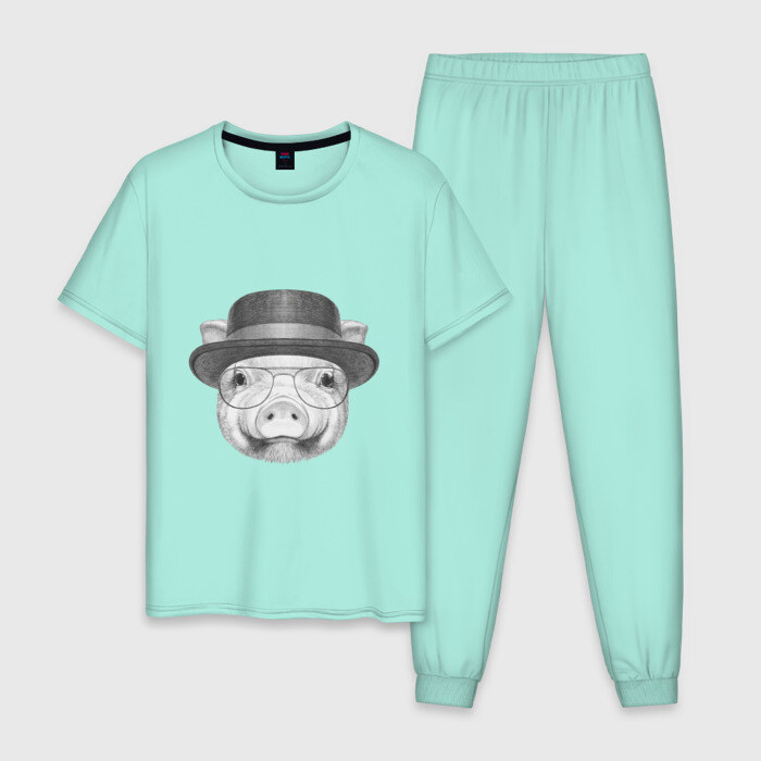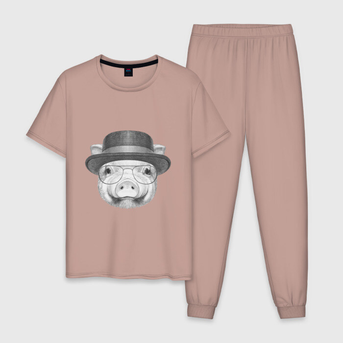 Мужские пижамы хлопок СВИНКА В ШЛЯПКЕ