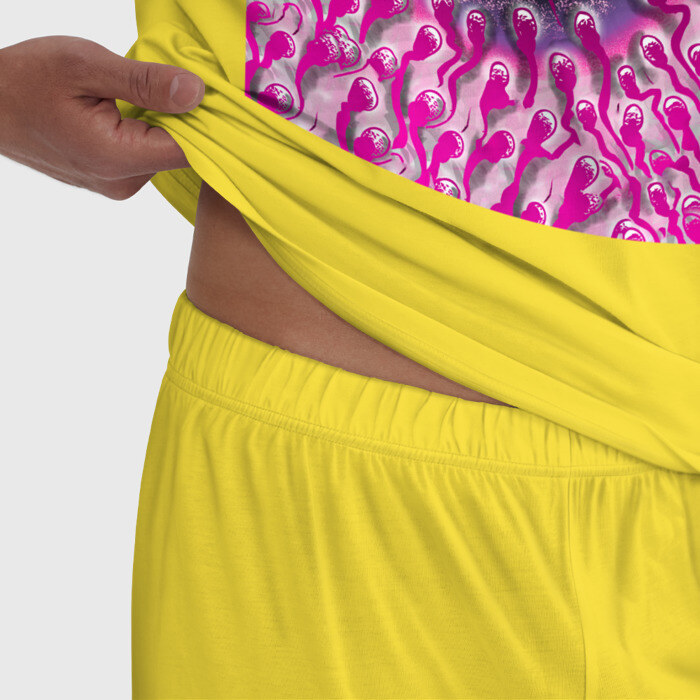 брюки и футболка прямого кроя, без карманов, на брюках мягкая резинка на поясе и по низу штанин