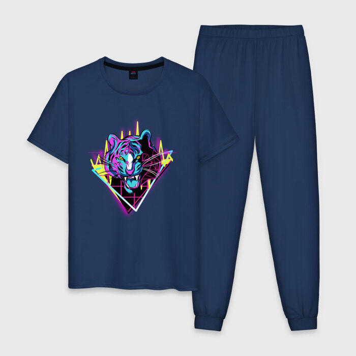 Мужские пижамы хлопок RETROWAVE NEON TIGER