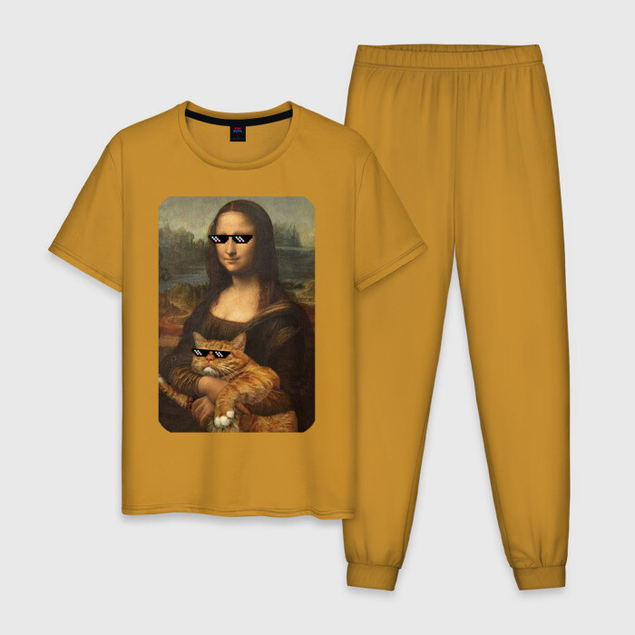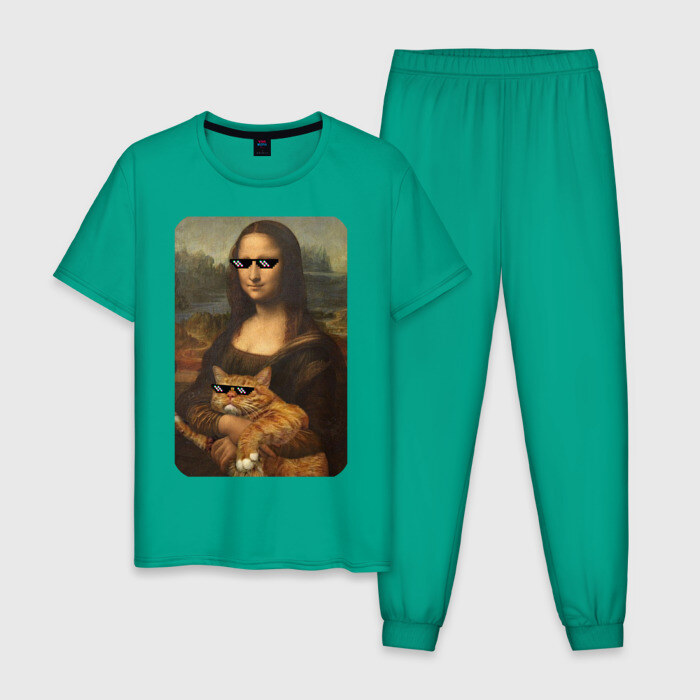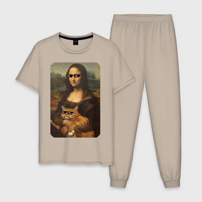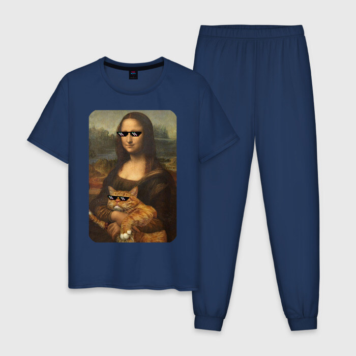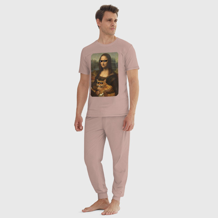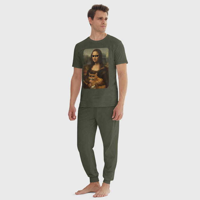 Мужская пижама хлопок Моно Лиза с котом в очках