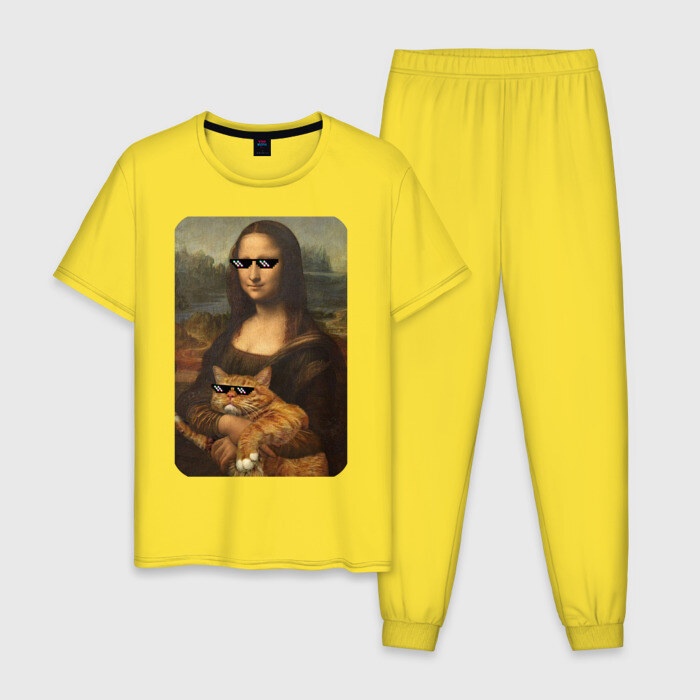 Мужские пижамы хлопок МОНО ЛИЗА С КОТОМ В ОЧКАХ