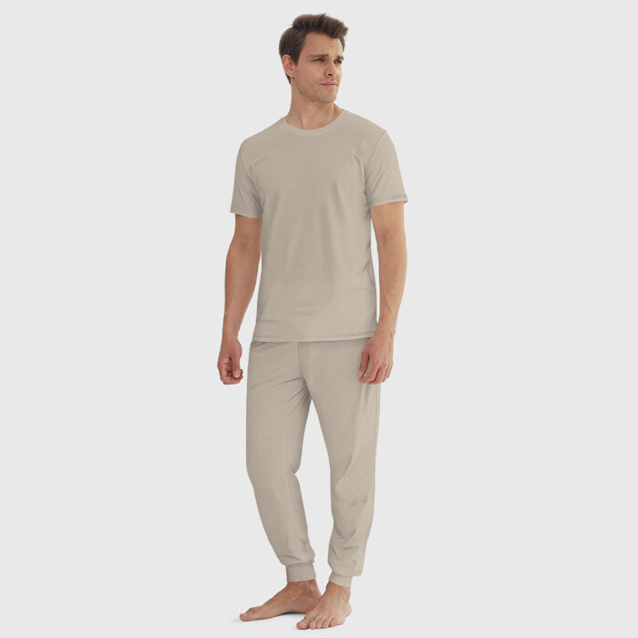 брюки и футболка прямого кроя, без карманов, на брюках мягкая резинка на поясе и по низу штанин