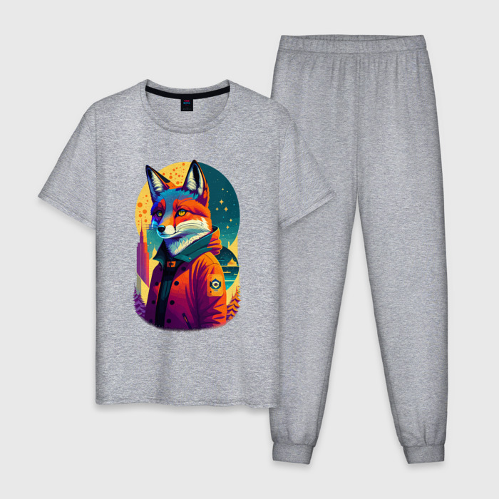 Мужская пижама хлопок Лисица на фоне звёздного неба нейросеть