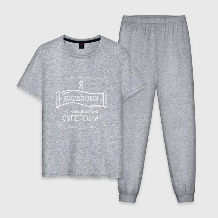 Мужские пижамы хлопок Я КОСМЕТОЛОГ, А КАКАЯ ТВОЯ СУПЕРСИЛА БЕЛЫМ ЦВЕТОМ