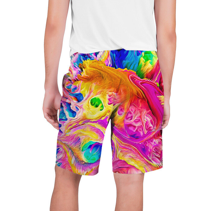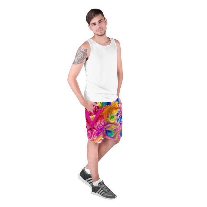 Шорты 3D сшиты из гладкой синтетической ткани, приятной на ощупь. Принт наносится по всей поверхности и сохраняет свою яркость и четкость даже спустя сотни стирок. У шорт высокая посадка, мягкий тканевый пояс, внутри которого шнурок для удобного регулирования ширины пояса. В сочетании с толстовкой на молнии или бомбером можно собрать спортивный костюм. Можно заказать с собственным дизайном.