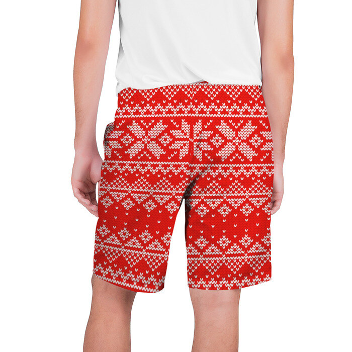 Мужские шорты 3D с принтом Красный зимний орнамент