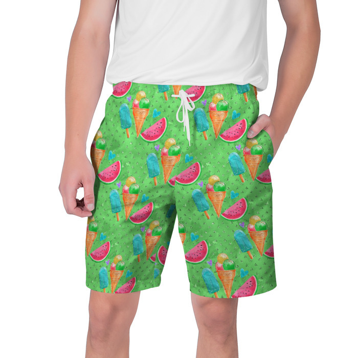 Мужские шорты 3D с принтом Арбуз и мороженое