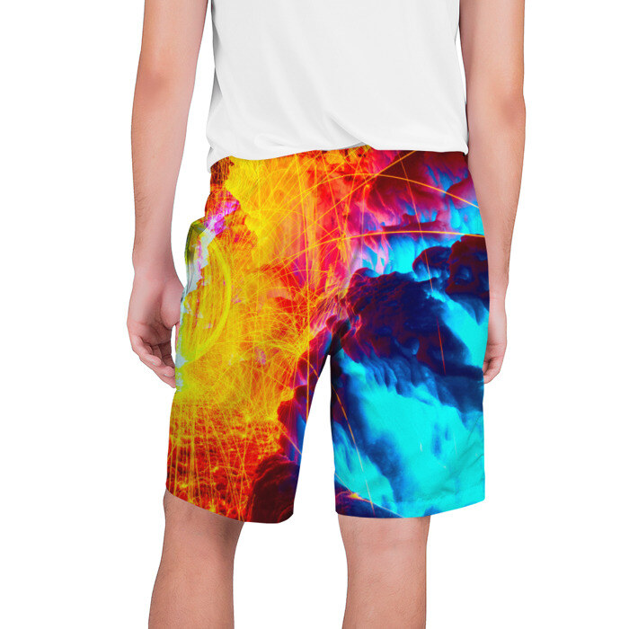 Шорты 3D сшиты из гладкой синтетической ткани, приятной на ощупь. Принт наносится по всей поверхности и сохраняет свою яркость и четкость даже спустя сотни стирок. У шорт высокая посадка, мягкий тканевый пояс, внутри которого шнурок для удобного регулирования ширины пояса. В сочетании с толстовкой на молнии или бомбером можно собрать спортивный костюм. Можно заказать с собственным дизайном.