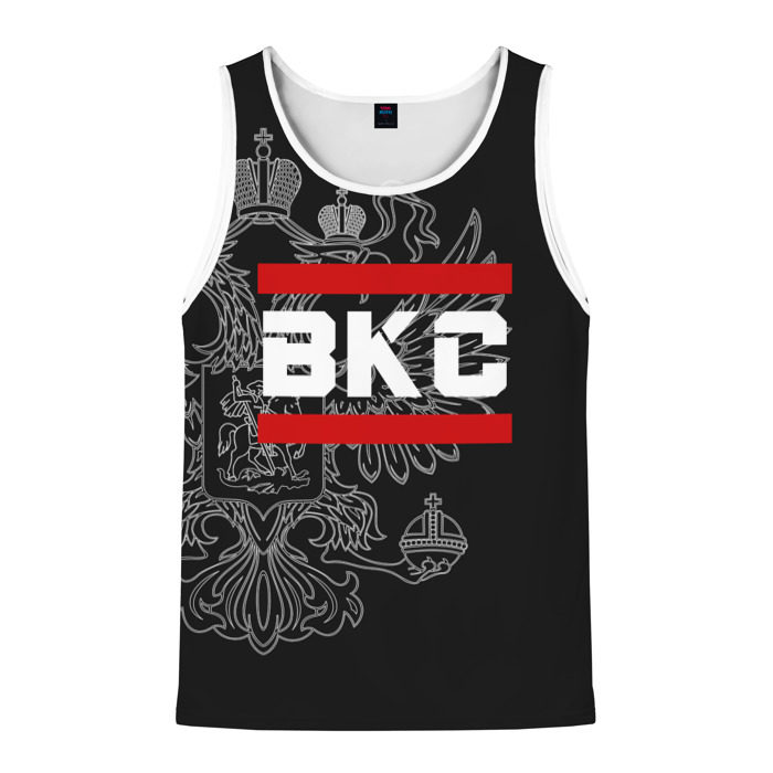 Мужская майка 3D с принтом ВКС белый герб РФ