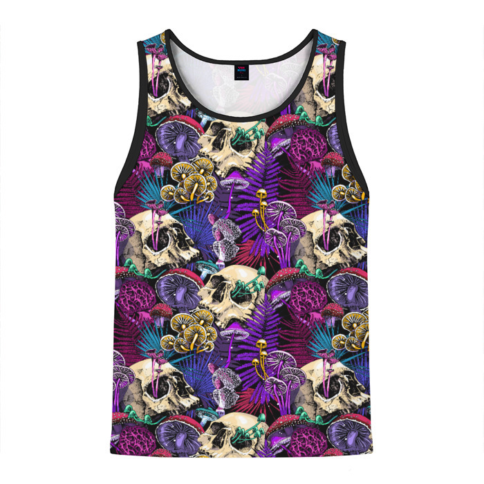 Мужская майка 3D с принтом Психоделика - черепа и грибы