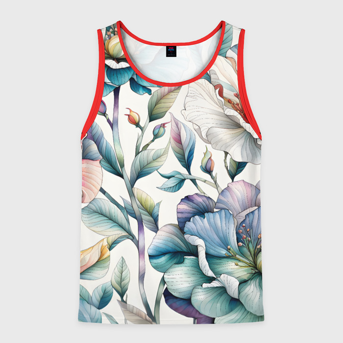 Мужская майка 3D Крупные цветы и листья в акварельной технике