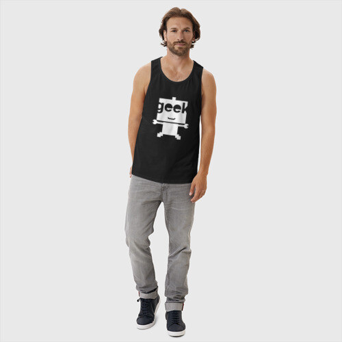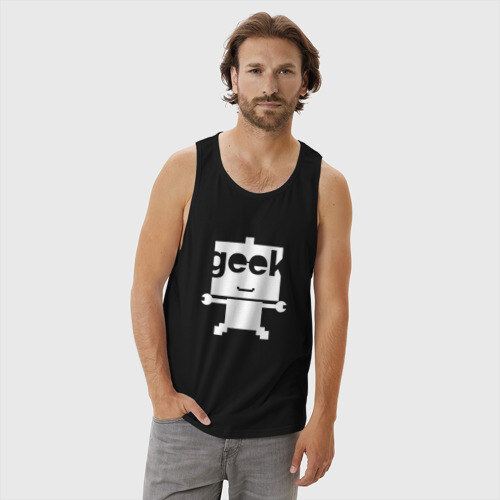 Мужская майка хлопок с принтом Робот geek (компьютерщик)
