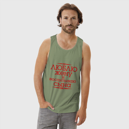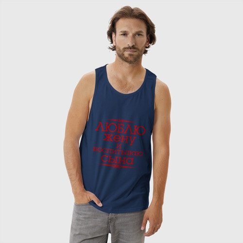 Мужская майка хлопок с принтом Люблю жену и воспитываю сына