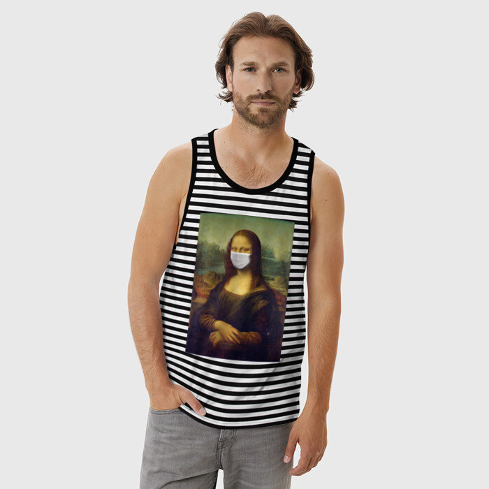 Мужская майка хлопок с принтом Мона Лиза в медицинской маске